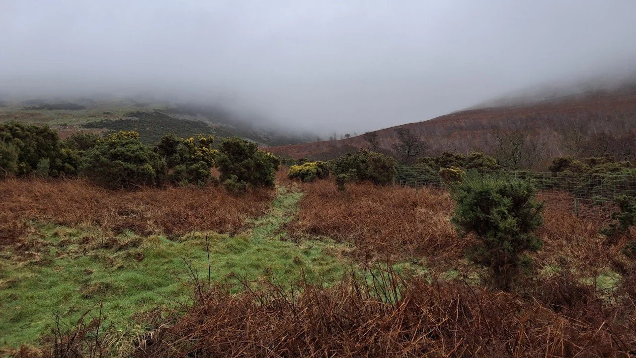 The damp mist hung heavy over the hills, deadening sound and obscuring our views, but it was very atmospheric.