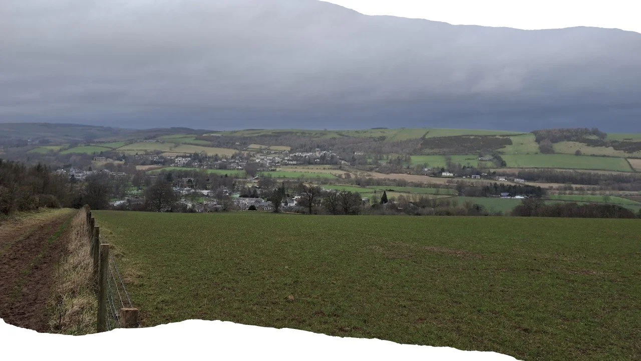 But long steep climbs are often rewarded by views, a bit cloudy today, but a beautiful view over Melrose none the less