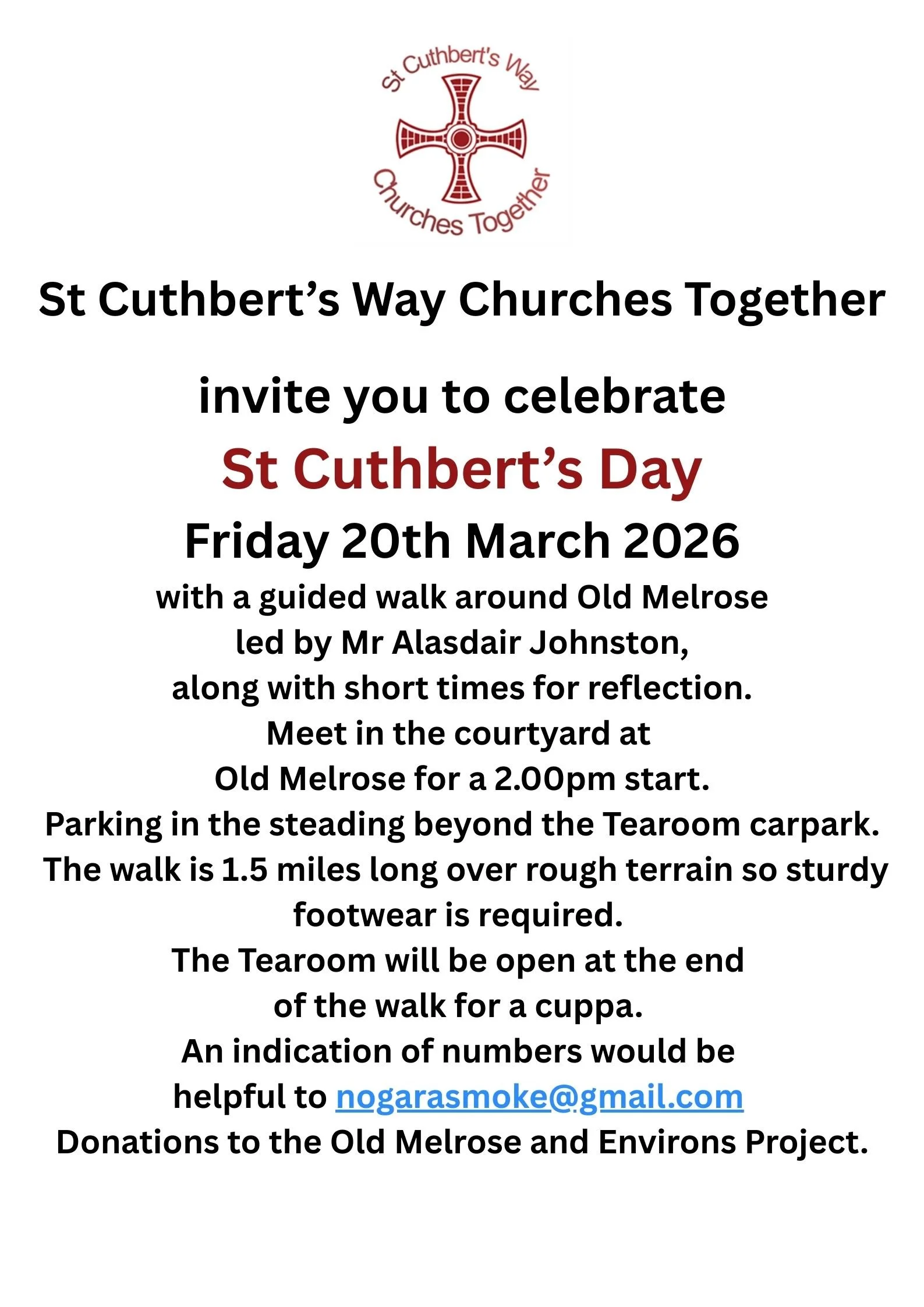 We meet at Melrose Abbey Melrose at midday on day one. Please make your own way there, though there is an option to join the support van leaving from Winson Green in Birmingham if that is convenient.